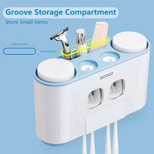 Ecoco Wall Mounted Toothbrush Holder with Toothpaste Dispenser