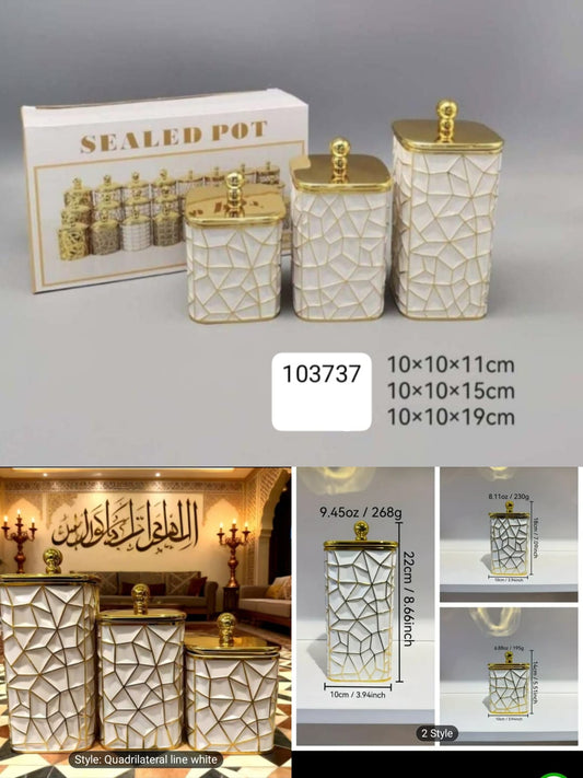 3PCS Arabian Style Airtight Storage Jars – Plastic Containers with Golden Lid