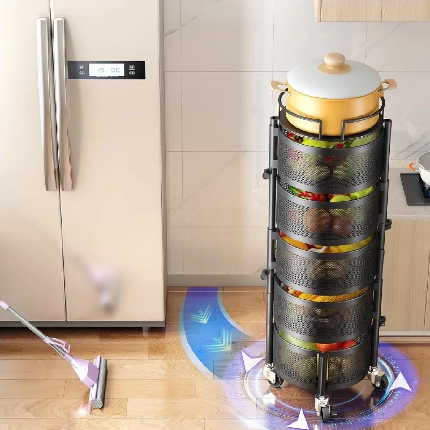 5-Layer Rotating Metal Kitchen Storage Trolley