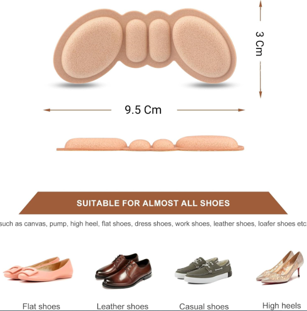 - Design for those who have a foot pain or blisters, stick the heel pad on the shoes to relief pressure and pain.