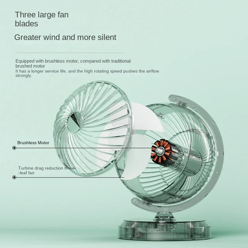 - 360° Rotating Office Desktop Fan Rechargeable Multifunction Portable Mute Globe Circulating Air Fan