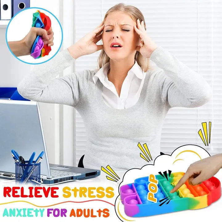 - 【Fidget Pop Children Sensory Toys & Games】 Press bubbles of poppet fidget down and make loud cripsy popping sounds on both side. The pop bubble push fidgets for kids with anxiety relieve stress for restoring mood for ADHD kids or autism sufferer, provide learning & education resources for mental development, logical thinking training and mental arithmetic ability, improve concentration for OCD and ADD kids. The squeeze toys for kids anxiety also for stressful adults.