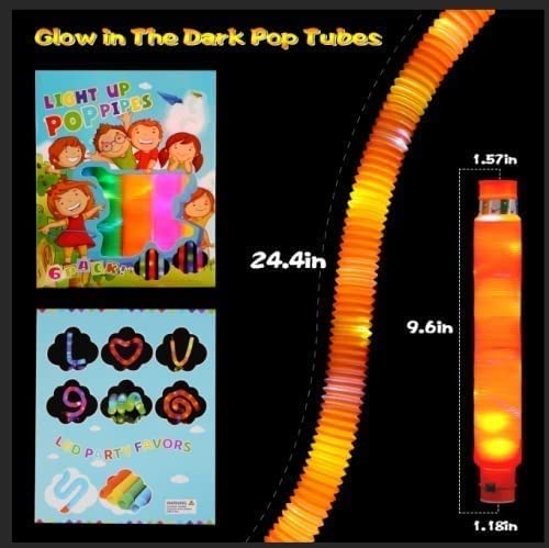 Light Up Pop Tubes Sensory Fidget Toys for Kids – 6 Pack