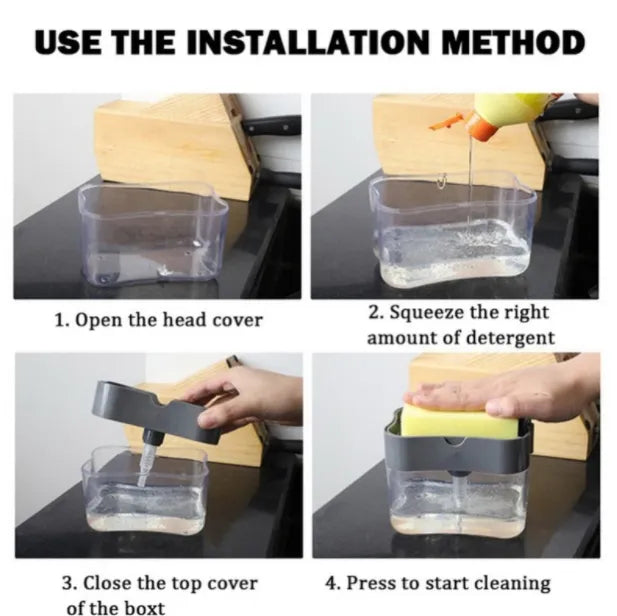 - 2 in 1 Soap Dispenser Pump Sponge Holder Countertop Dishwashing Liquid Container