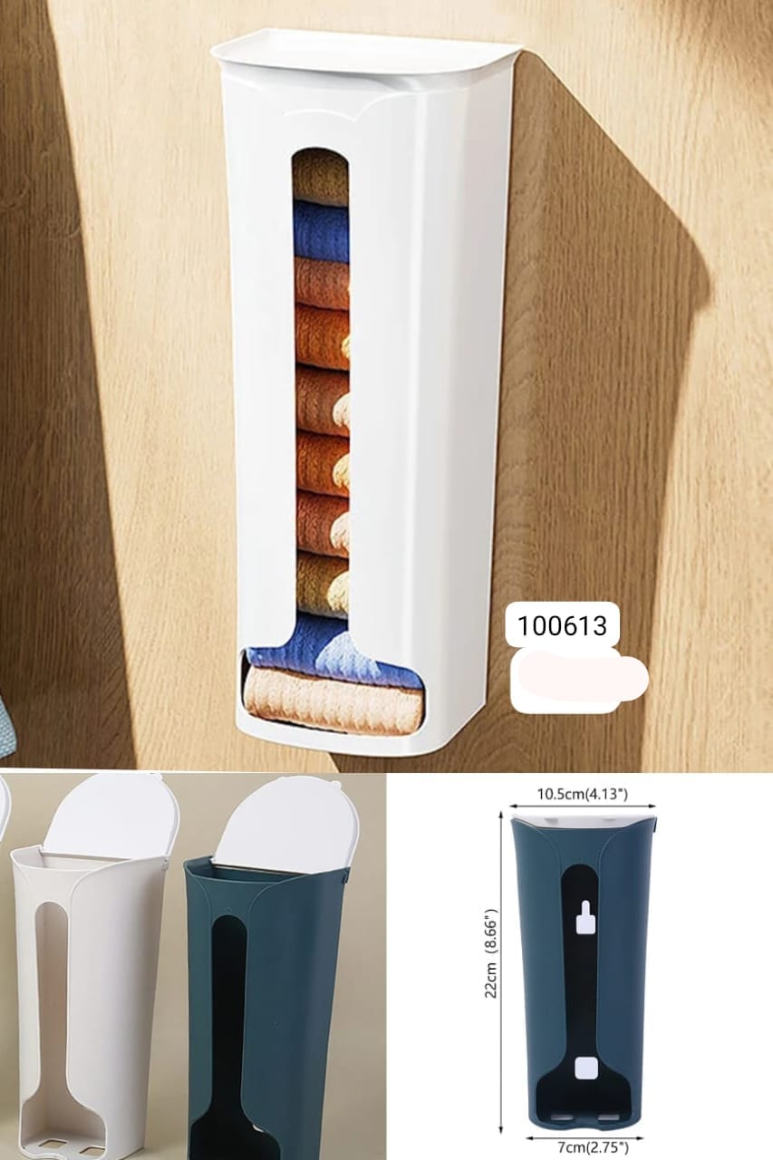 - Wall-mounted storage box – ideal for socks, plastic bags & more